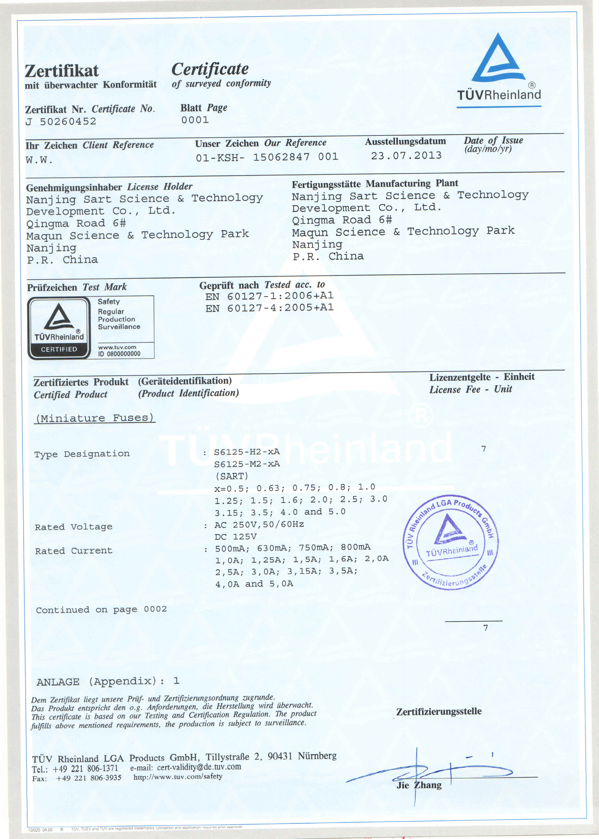| S6125-M2-0.5A G | 0.5 | 250 | UL/TUV/KC: | 260.00 | 0.285 |